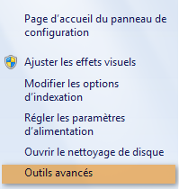 Ce menu donne accès à d’autres fonctionnalités en lien avec les performances de votre ordinateur. Les possibilités offertes sont :