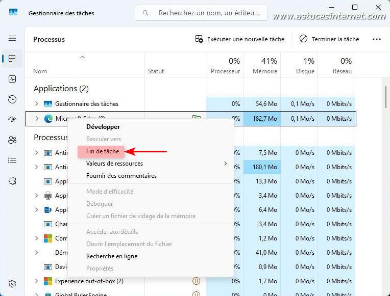 Faites un clic droit sur votre navigateur, et cliquez sur Fin de tâche.