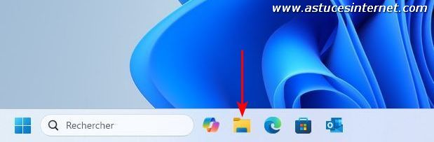 Si l’icône n’est pas présente dans votre barre des tâches, vous pouvez taper Explorateur dans le champ de recherche, ou utiliser la combinaison de touches Windows + E.
