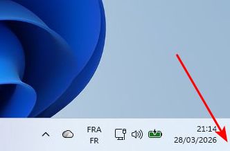 - Cliquez sur la petite barre tout à droite de la barre des tâches