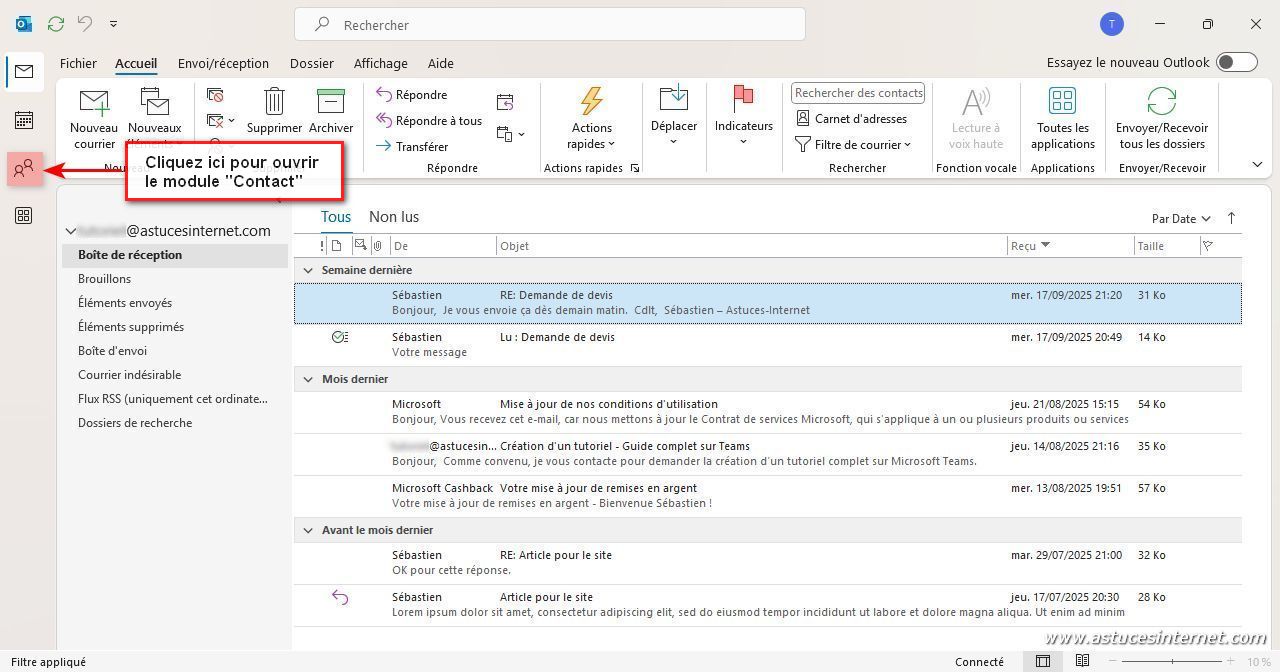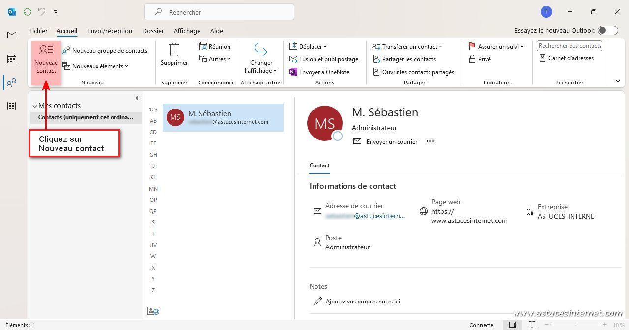 Dans cet article, nous allons voir comment ajouter un contact dans Outlook. Puis nous verrons comment l’utiliser pour envoyer un message.