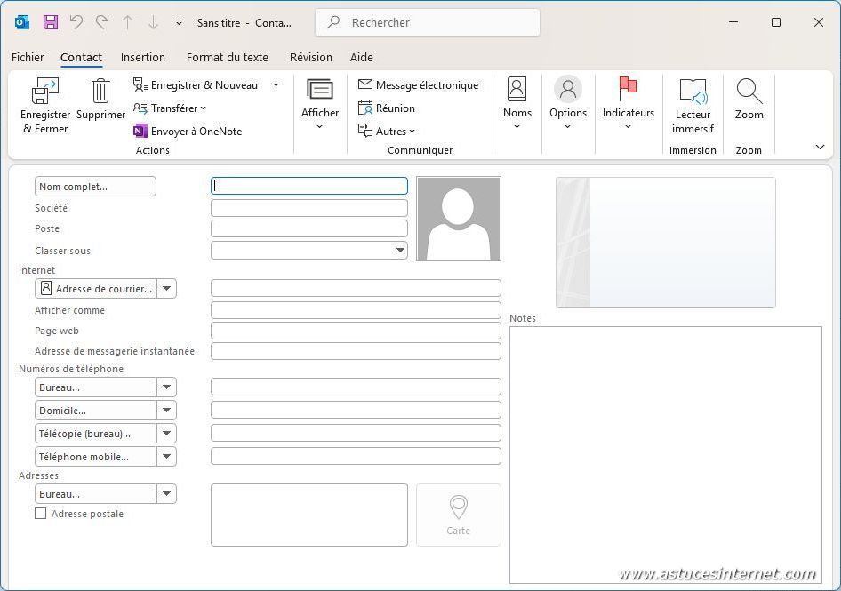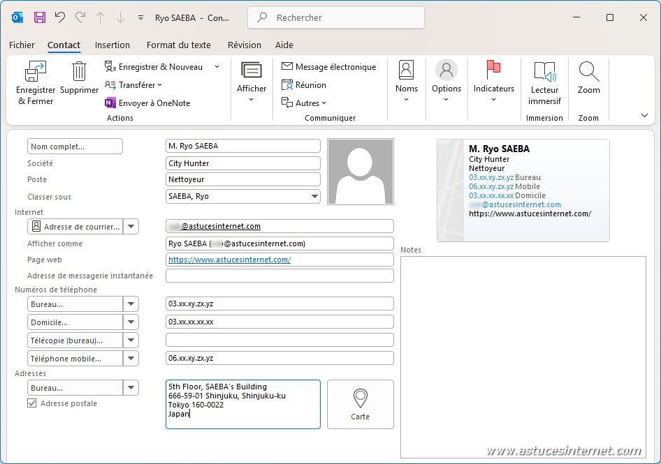 Outlook dispose d’une fonctionnalité permettant de gérer vos contacts. Elle permet d’enregistrer de nombreuses informations telles que l’identité, l’adresse postale, l’adresse email, les numéros de téléphone de nombreuses autres données liées à l’activité professionnelle.
