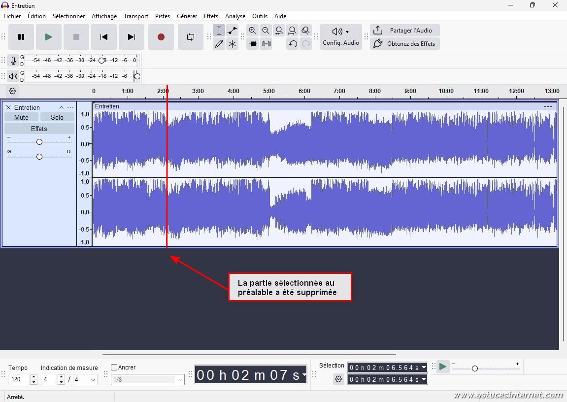 Nous venons de supprimer une partie se trouvant au début d’un fichier audio, ainsi qu’une partie se trouvant à la fin.