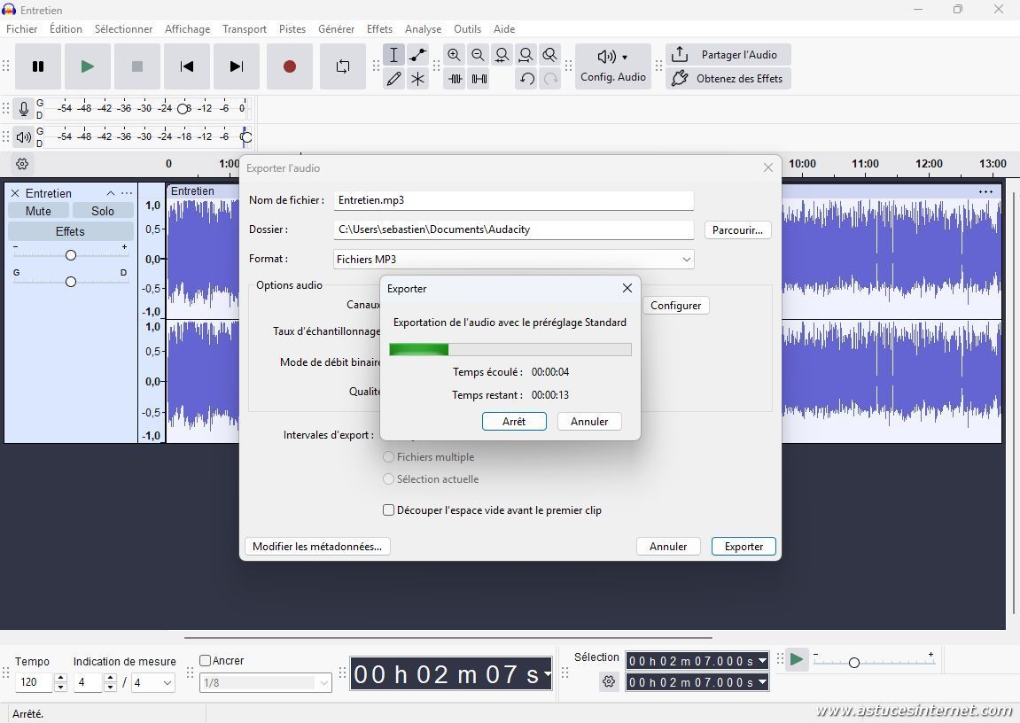 Dans notre exemple, nous allons exporter un fichier mp3.