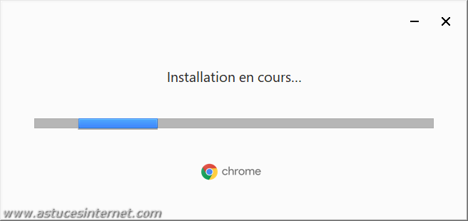 L’installation va démarrer. Une barre de progression va vous donner un état d’avancement.