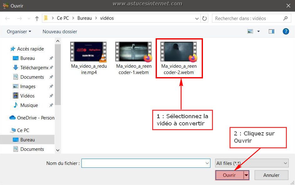 Sélectionnez la vidéo WebM qu’il faut convertir, et cliquez sur Ouvrir.